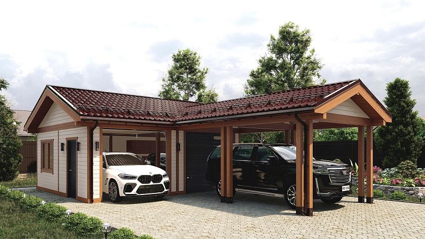 • Навес к частному дому для автомобиля ГРИМСТАД