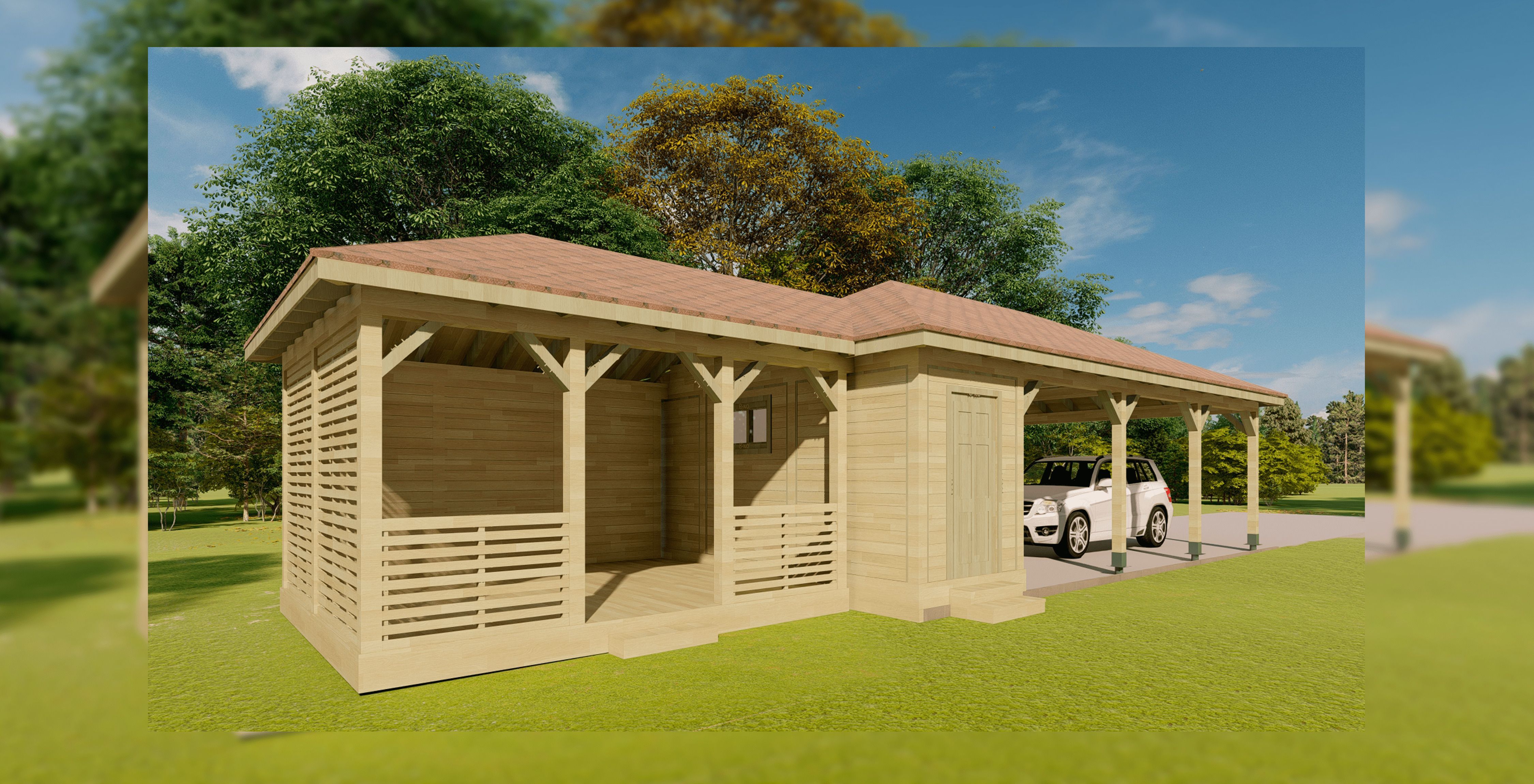 • Навес к частному дому для автомобиля ГРИМСТАД