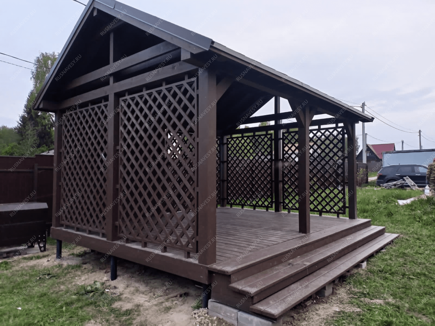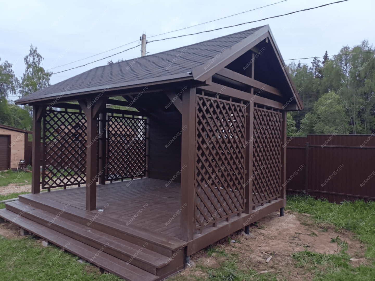 Вся конструкция обрабатывается декоративным деревозащитным составом в 2 слоя - при необходимости дополнительно.