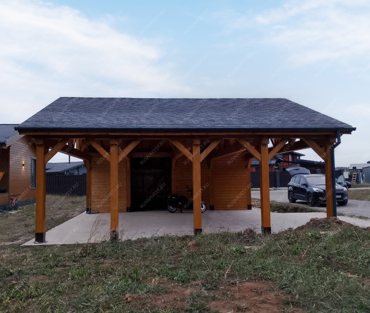 Навес для двух машин РИВЕР двухскатный