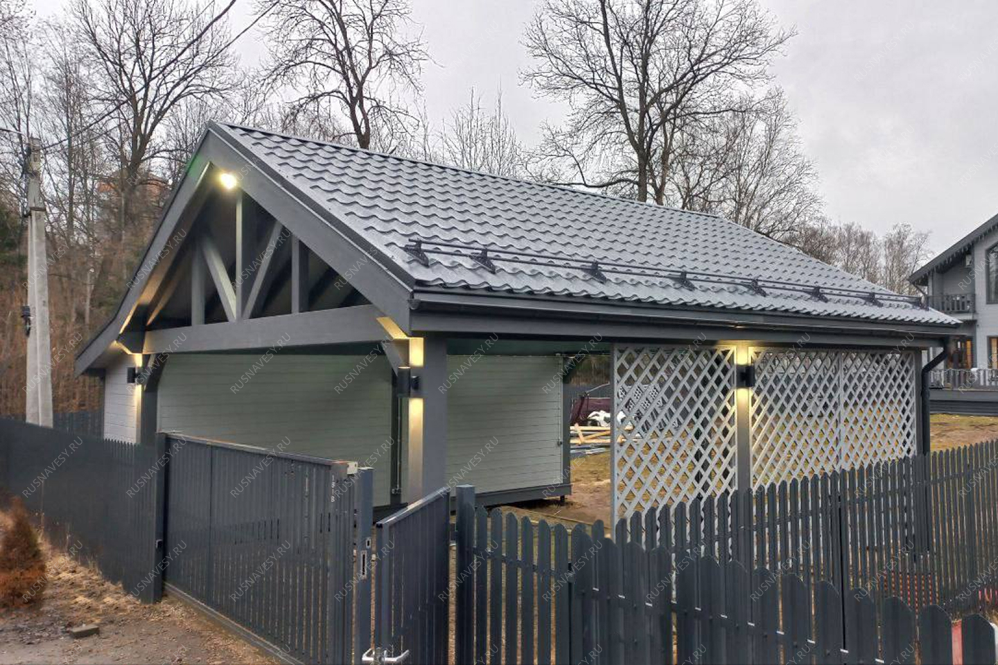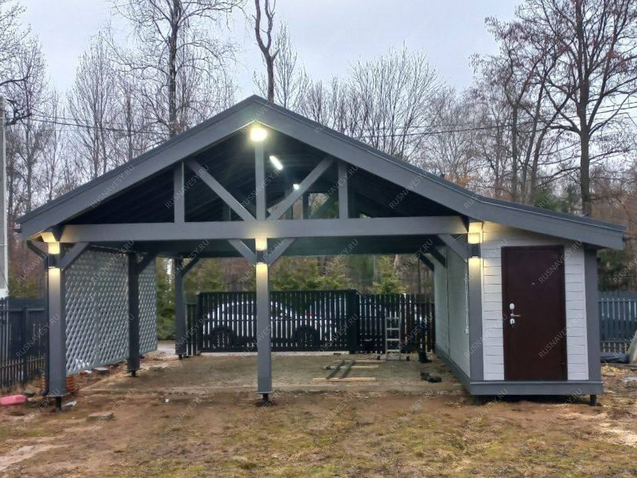 Навес к частному дому для автомобиля ГРИМСТАД
