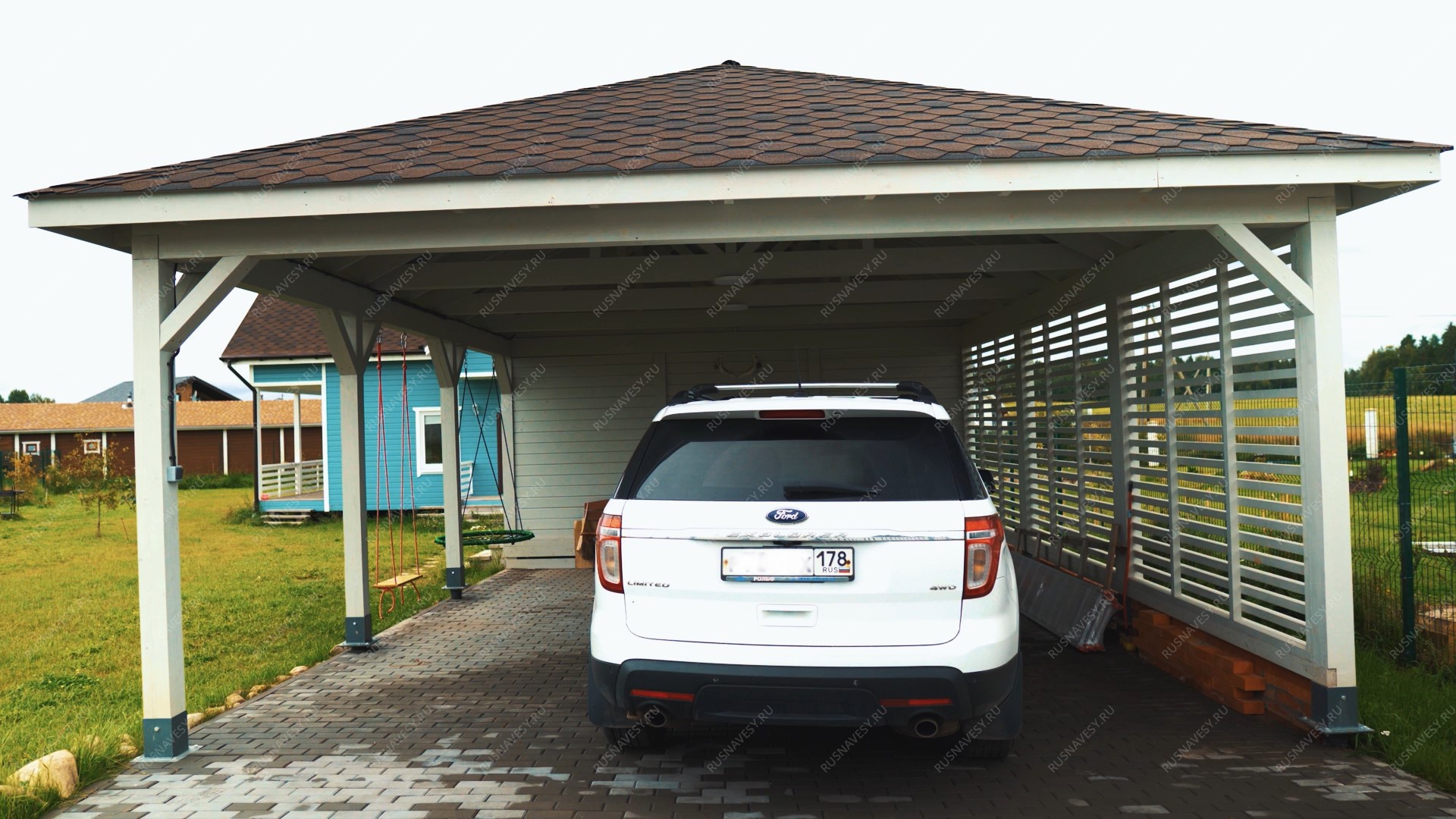 • Навес к частному дому для автомобиля ГРИМСТАД