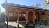 Навес «ШЕЛТЕР» с хозблоком представляет собой универсальное сооружение квадратной формы 8×8 м и общей площадью 64 м². Модель эффективно комбинирует крытую парковку на два автомобиля с функциональным подсобным помещением. Каркас конструкции изготавливается из хвойных пород древесины, что гарантирует прочность, экологичность и придает строению классический эстетичный вид, естественно интегрирующийся в загородный ландшафт. Важным преимуществом является возможность индивидуального выбора цвета конструкции, позволяющего идеально сочетать навес с архитектурой основного дома и другими постройками на участке.