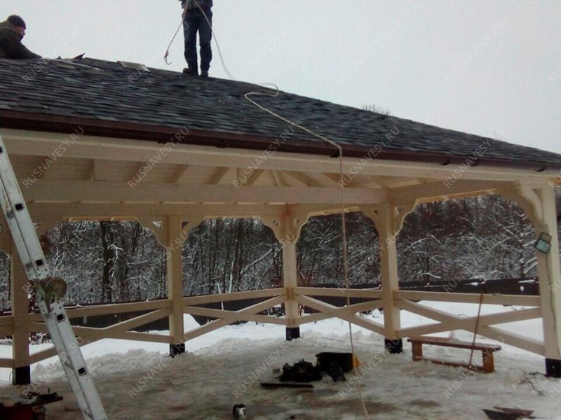 Навес для трех машин ЛИОН сочетает вместительность и прочность, предлагая надежное укрытие для транспорта без лишних элементов. С размерами 8×6 м и площадью 48 м² он позволяет комфортно разместить три автомобиля, оставляя пространство для маневра. Четырёхскатная крыша эффективно справляется с отводом осадков, снижая риск деформаций от снега или дождя. Каркас из хвойных пород (ель, сосна) в виде сухого строганого массива камерной сушки обеспечивает экологичность и стойкость к гниению, с брусом сечением 190×190 мм из цельного дерева (с вариантом клееного для предотвращения трещин). Стропильная система на базе сухой доски 45×190 мм гарантирует устойчивость к ветровым нагрузкам. Кровельное покрытие из гибкой черепицы Shinglas коллекции "Соната" (с опцией замены) добавляет герметичности и визуальной привлекательности, подходящей для любого двора. Легкость сборки и минимальные требования к уходу делают этот навес рациональным вариантом для загородных владений, где важны долговечность и простота в эксплуатации.