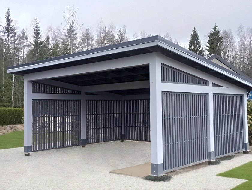 • Навес к частному дому для автомобиля ГРИМСТАД