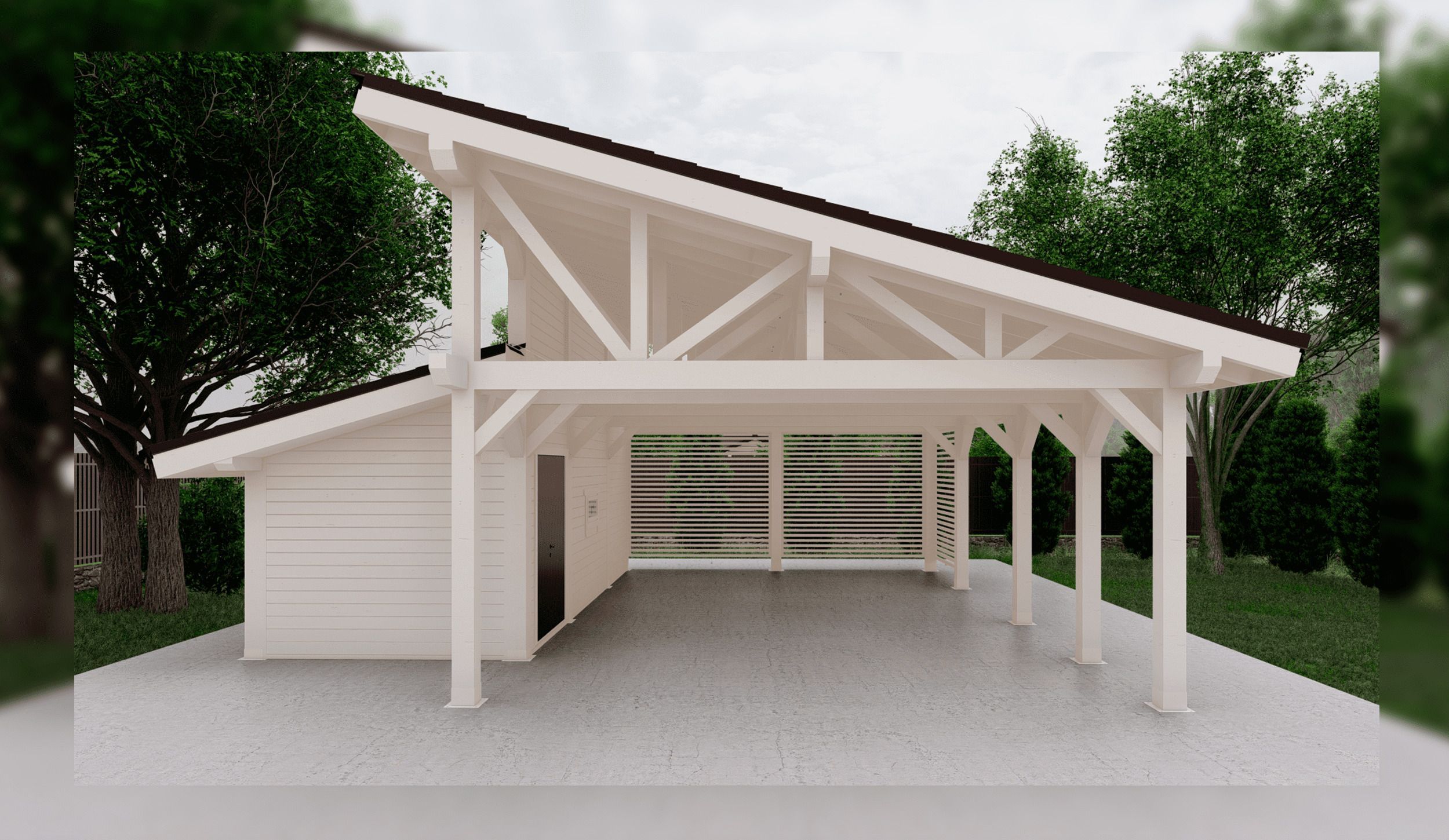 • Навес к частному дому для автомобиля ГРИМСТАД